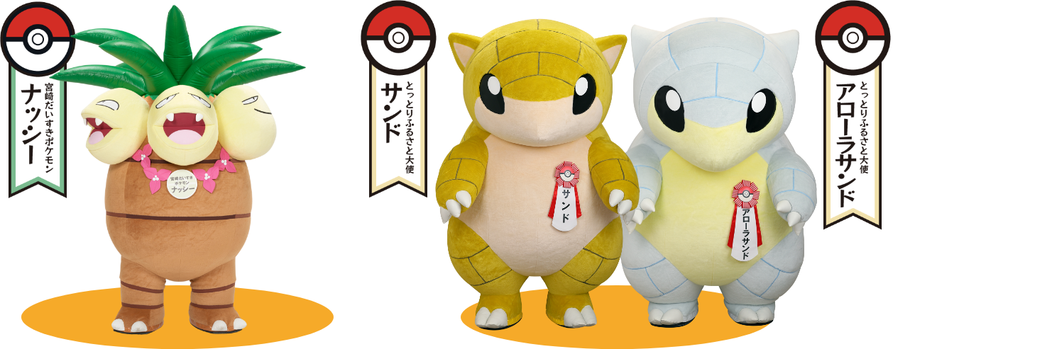 グリーティングには宮崎だいすきポケモンのナッシーに加えて、各地の推しポケモンたちが登場します。